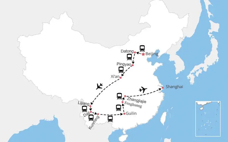 C'est l'un de nos itinéraires classiques recommandés pour un voyage en Chine de 3 semaines. Nous offrons ci-dessous plusieurs itinéraires, chacun avec son propre accent. Vous pouvez cliquer pour voir le circuit correspondant en fonction de vos intérêts.