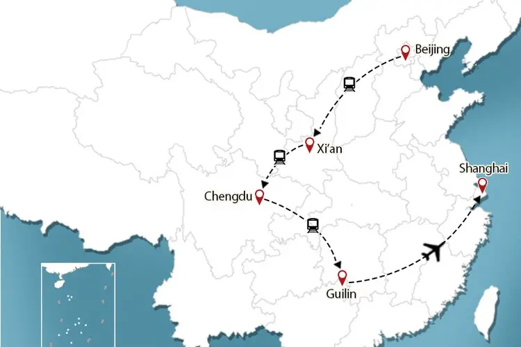 Si vous êtes intéressé par cet itinéraire mais qu'il ne répond pas entièrement à vos besoins, veuillez cliquer sur le bouton ci-dessous et exprimez vos envies de voyage (Durée, Villes à modifier, Style d'hébergement, etc.) dans notre formulaire personnalisé. Nous adapterons votre voyage en Chine en fonction de cet itinéraire et de vos exigences spécifiques.