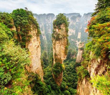Parc national forestier de Zhangjiajie; Mont Tianmen; Grand Canyon de Zhangjiajie et le Pont de verre. |