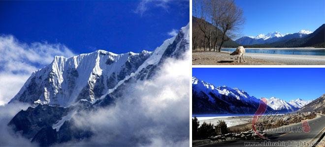 Vingt montagnes aux sommets couverts de neige se dressant toutes à plus de 6000 mètres d’altitude entourent le mont Gongga. Le site à découvrir comprend le mont Gongga lui-même et les pics qui l’entourent, le parc national forestier de Hailuogou (où l’on peut se baigner dans des sources thermales à proximité d’un énorme glacier) et plusieurs lacs d’altitude aux eaux pures.